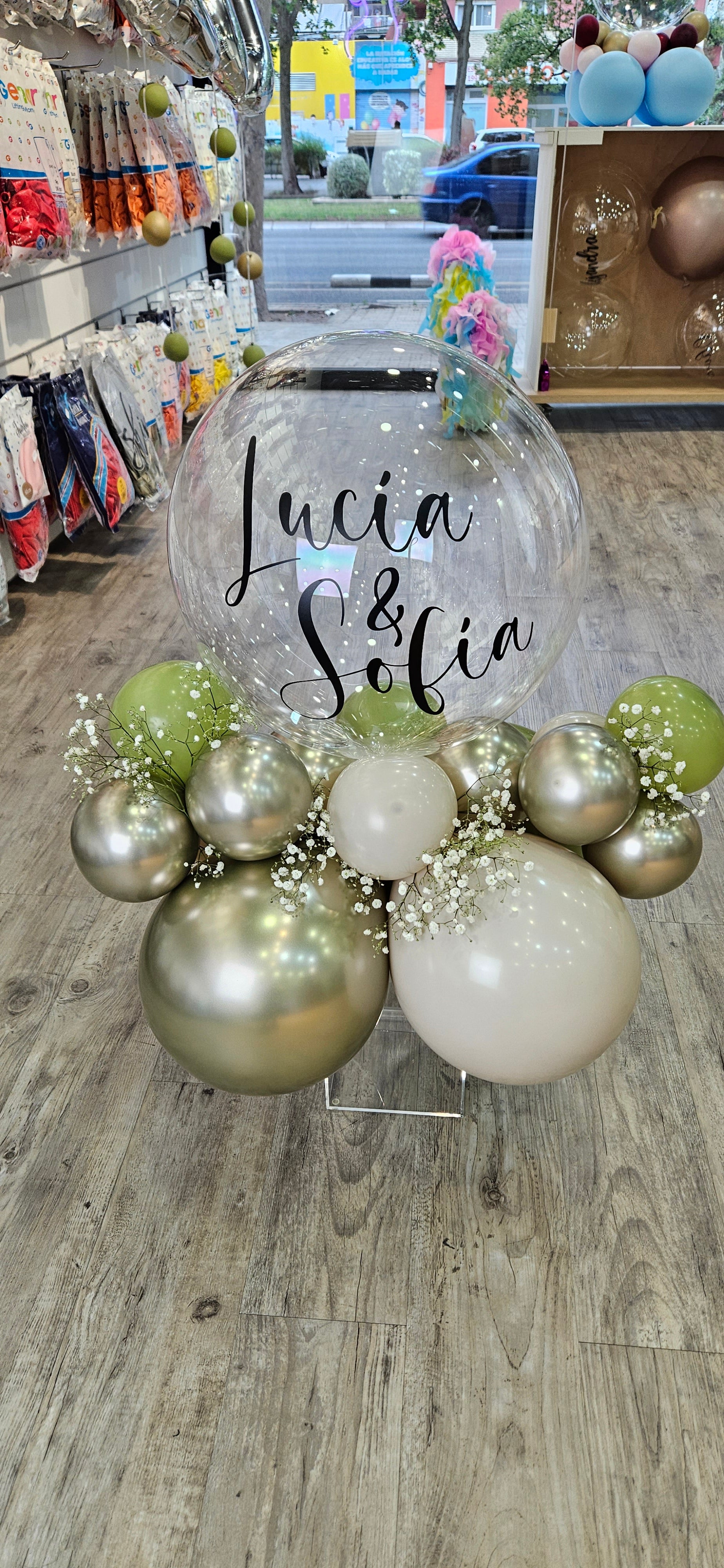 Encantador Centro de Mesa de Globo Transparente "Burbuja Personalizada". Elegante pieza decorativa que capturará la atención de...