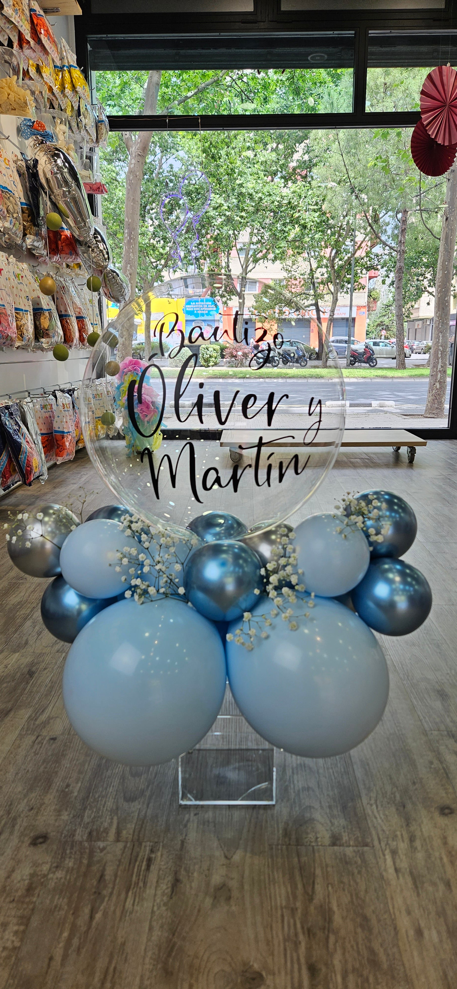 Encantador Centro de Mesa de Globo Transparente "Burbuja Personalizada". Elegante pieza decorativa que capturará la atención de...