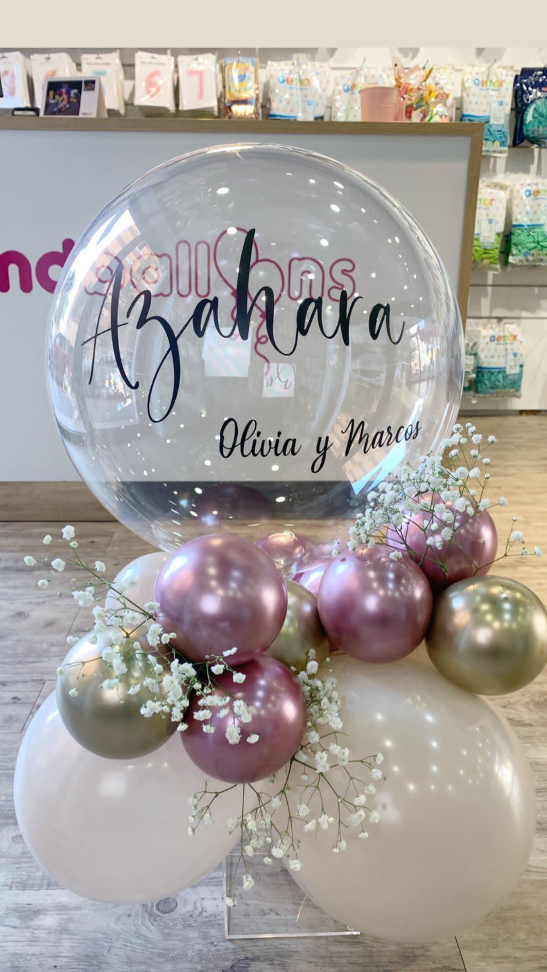 Encantador Centro de Mesa de Globo Transparente "Burbuja Personalizada". Elegante pieza decorativa que capturará la atención de...