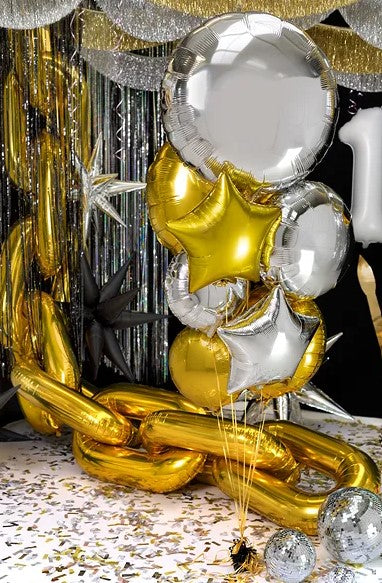 Globo de aluminio redondo espejo en color oro, tamaño antes del inflado aprox. 80 cm (31''), tamaño después del inflado aprox. 64 cm (25'').
