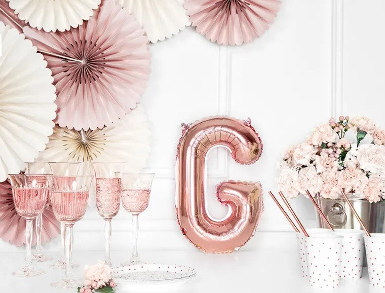 Globo de lámina metálica Letra ''G'' en oro rosa, altura antes del inflado aprox. 40 cm (16''),...