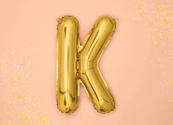 Globo de lámina metálica Letra ''K'' en oro, altura antes de inflar aprox. 40 cm (16''), altura...