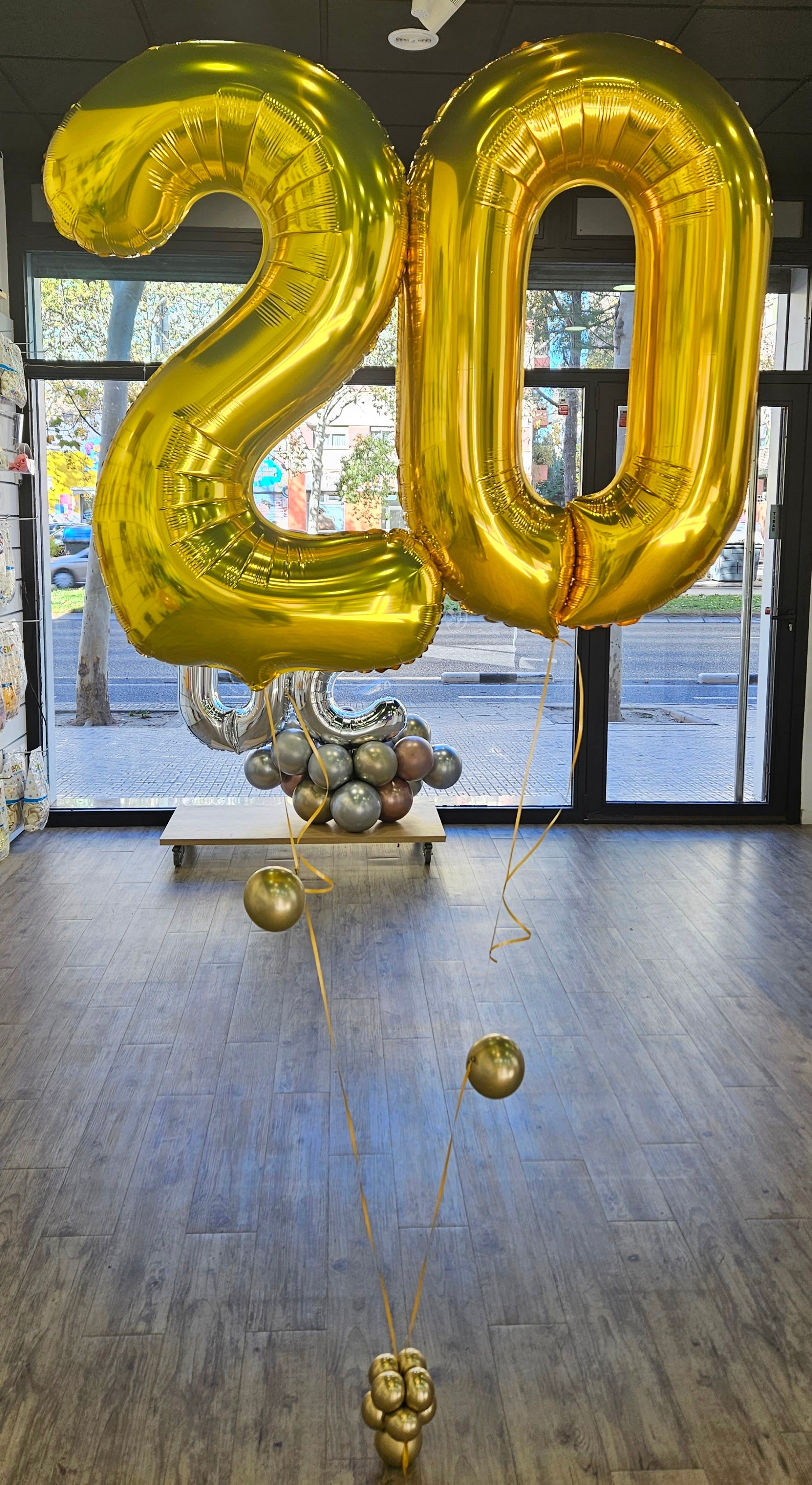 Celebra de manera espectacular con nuestra Composición de Globos con Helio, una edición encantadora para cumpleaños y aniversarios. Esta composición presenta números flotantes con helio que añaden un toque personalizado y festivo a tus celebraciones más importantes.